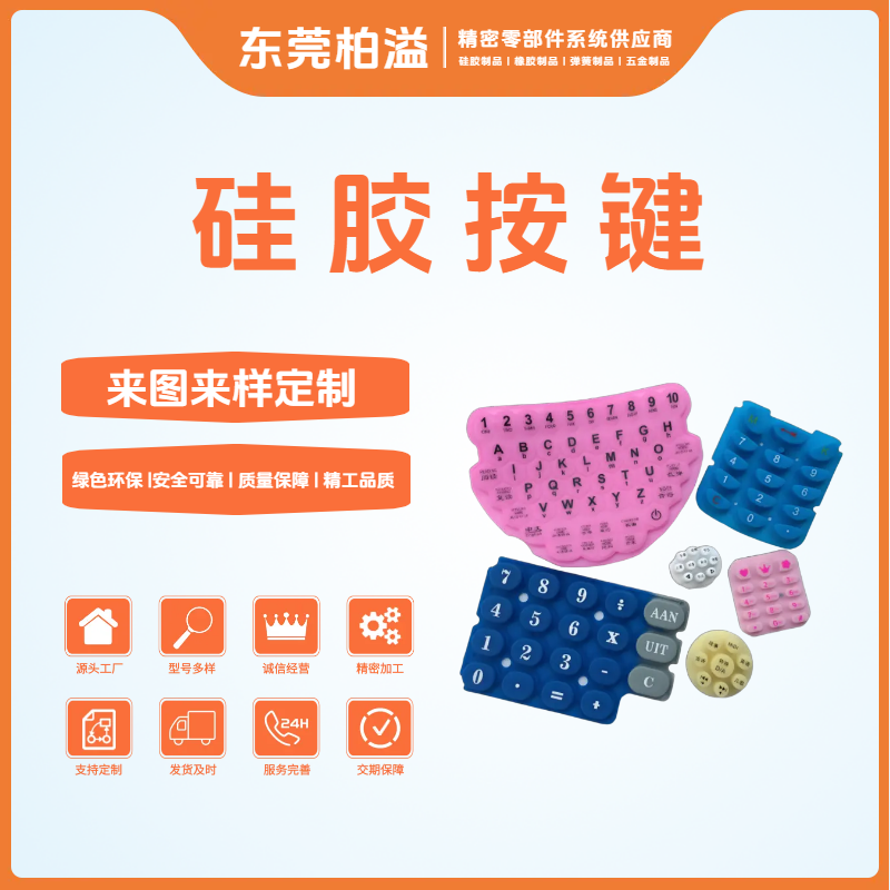 硅胶按键的制作流程涵盖原料混炼→模具制造→硫化成型→修边→二次加工→检测包装,每个环节需严格控制工艺参数(温度、压力、时间等)以保证产品质量。东莞柏溢硅胶制品厂等专业厂家会根据客户需求(如应用场景、性能指标、产量)优化生产工艺,确保按键在手感、耐用性、功能性上达到使用要求。